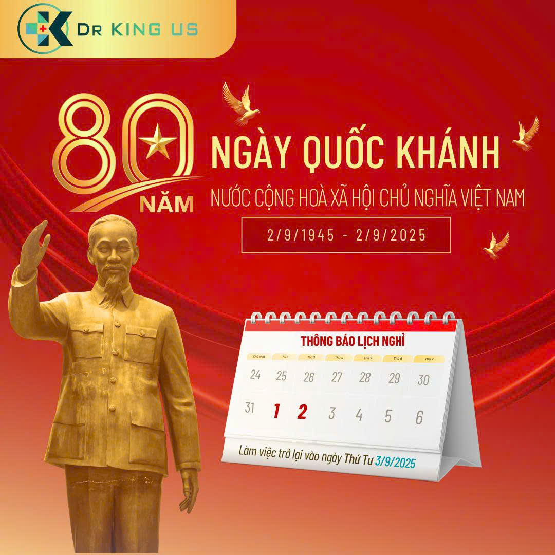 Kính gửi: Quý Khách hàng, Quý Đối tác và toàn thể Nhân viên, Nhân dịp Quốc khánh 2/9, Công ty TNHH DR KING US trân trọng thông báo lịch nghỉ lễ như sau: